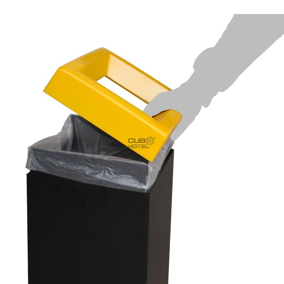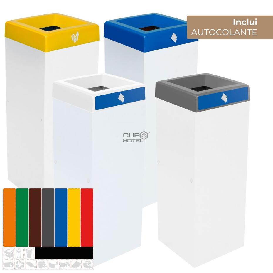 Includes a sticker with various color options and waste symbols to place on the lid, identifying the waste to be disposed of.