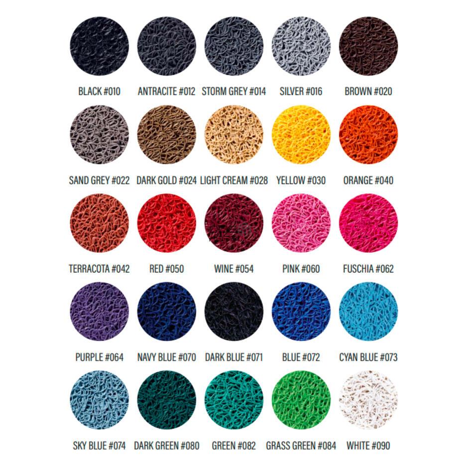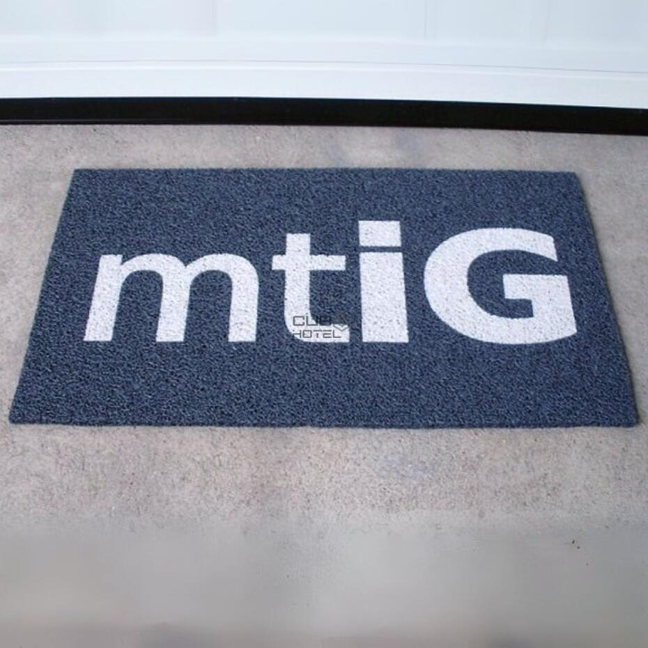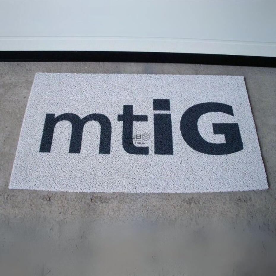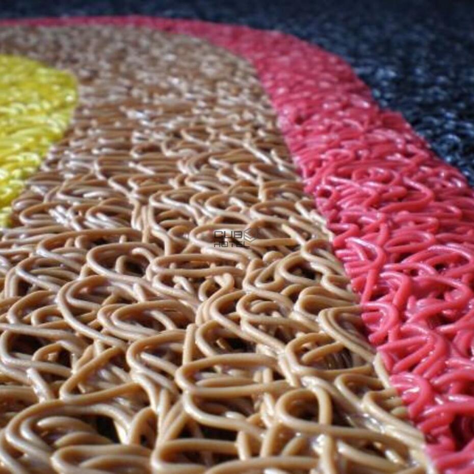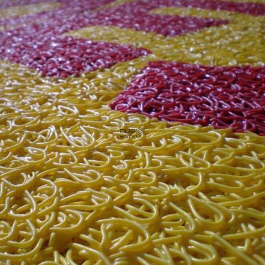 PVC spaghetti mat with personalized logos. Dirt and debris are deposited underneath the mat, making it easier to clean and preventing them from getting inside the building.