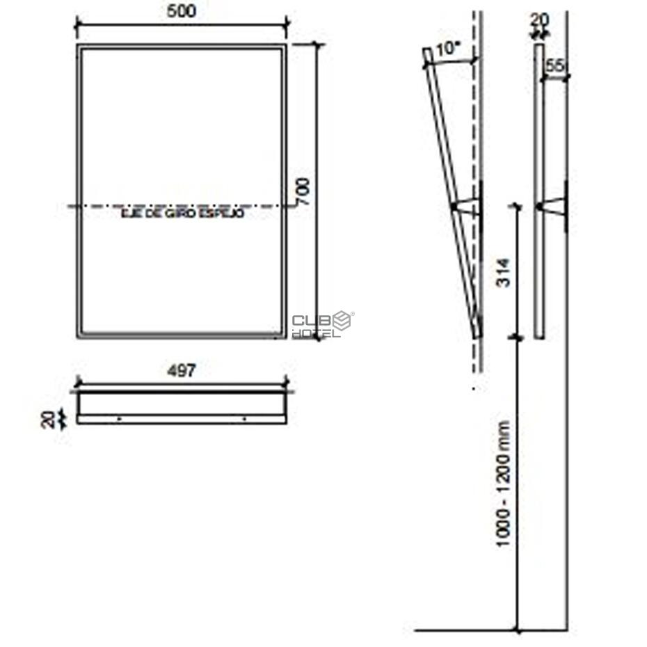 Mirror with adjustable tilt angle, specially designed to be placed in toilets and bathrooms.