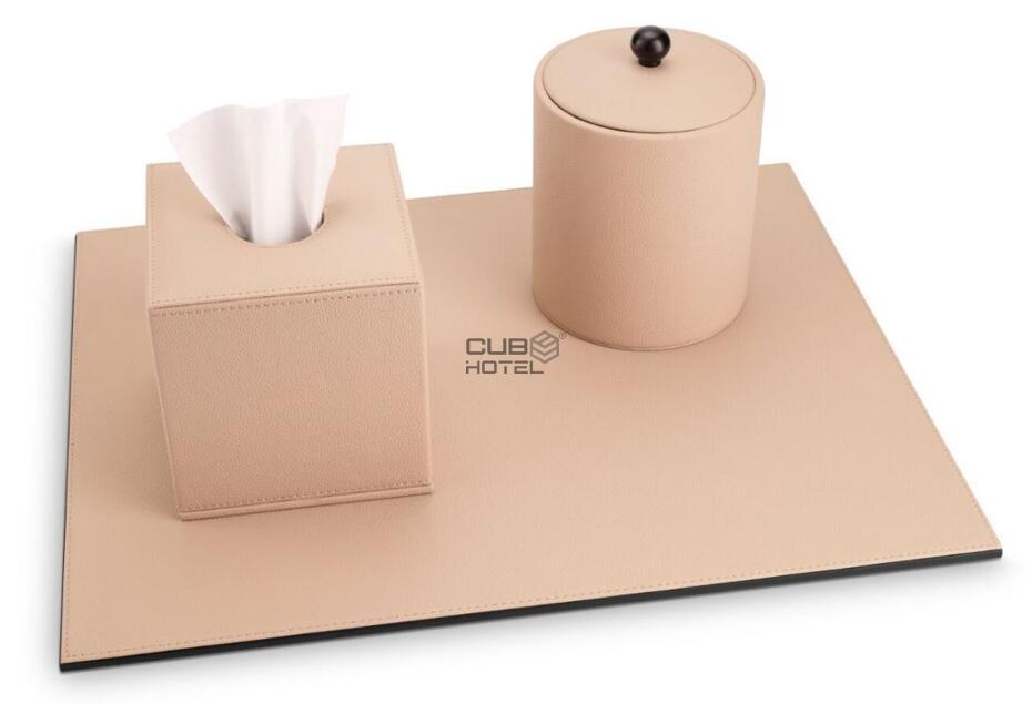 Rectangular beige faux leather tissue box
