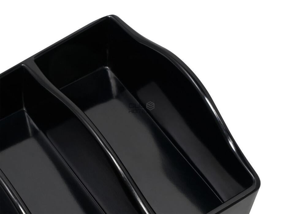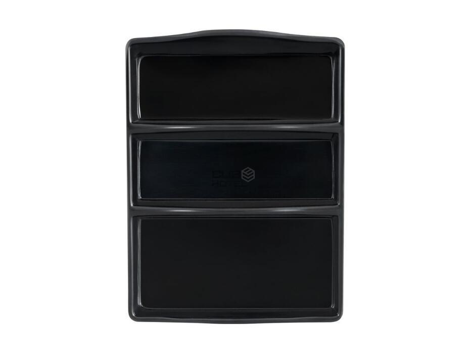 Discover the Black Ascot Sachet Holder, the ideal solution to organize and style your hotel rooms. Made of durable melamine, this holder features an elegant black design and includes three spacious compartments, perfect for storing tea, coffee, sugar, stirrers, and other essential beverage items.