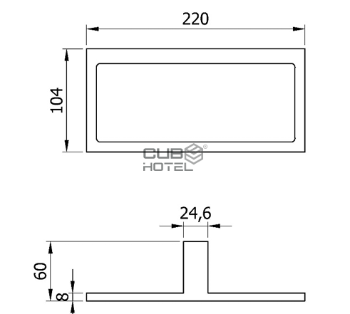 Dimensiones: 104 alto x 220 ancho x 60 fondo (mm).