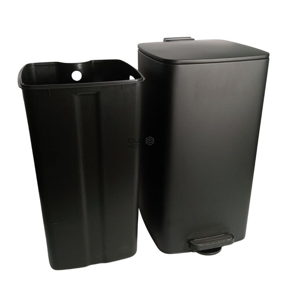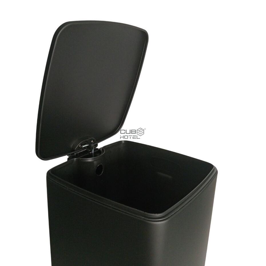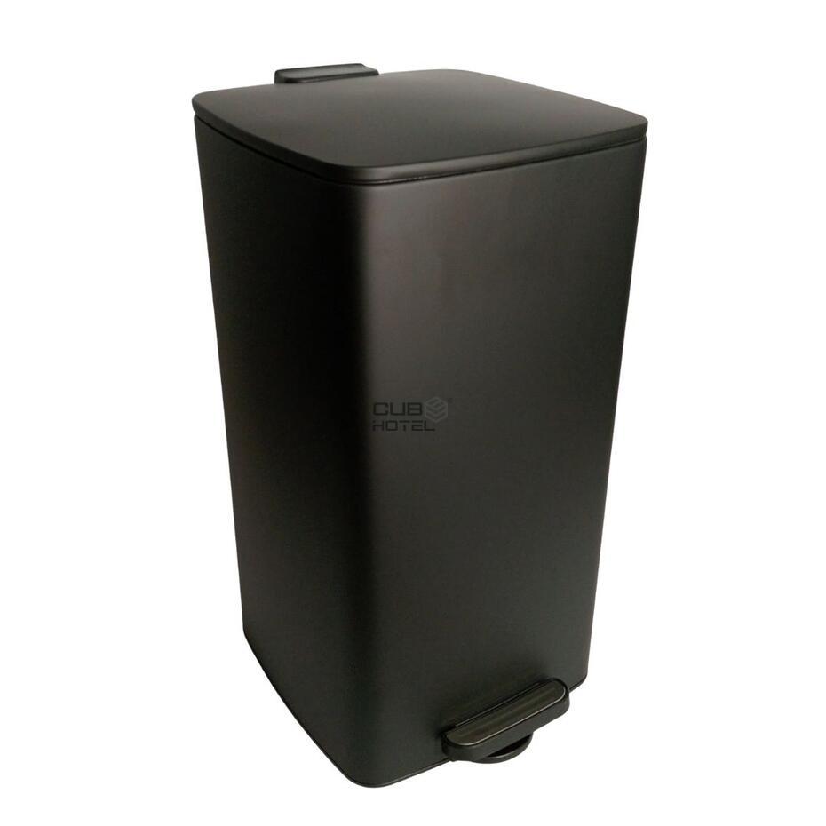 Cubo de basura con pedal de 30 litros, ideal para cocinas de hoteles, alojamientos locales y zonas de servicio. Combina un diseño funcional con un acabado negro moderno y discreto.