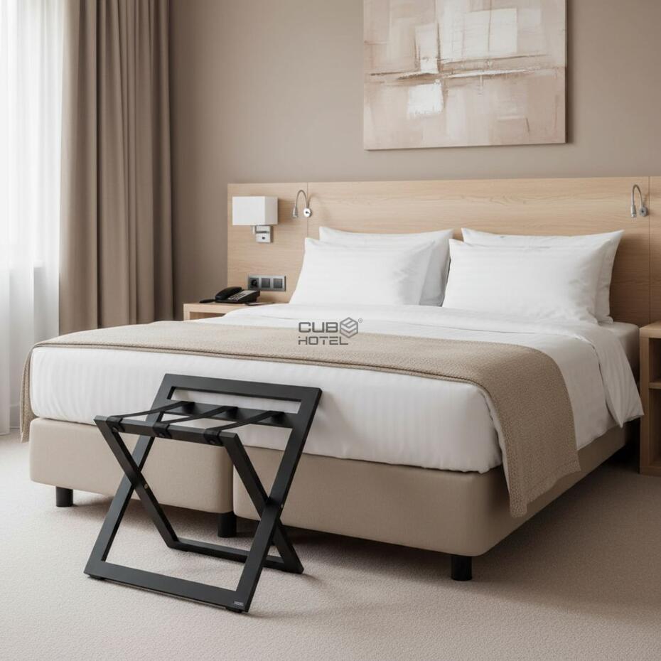 - Proteja sus camas y sábanas del polvo del camino y evite que sus huéspedes ocupen un espacio preciado en sus camas o escritorios para hacer o deshacer la maleta con nuestro elegante portaequipajes de diseño holandés.