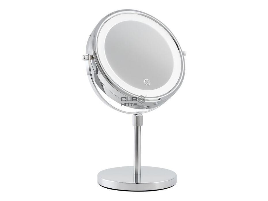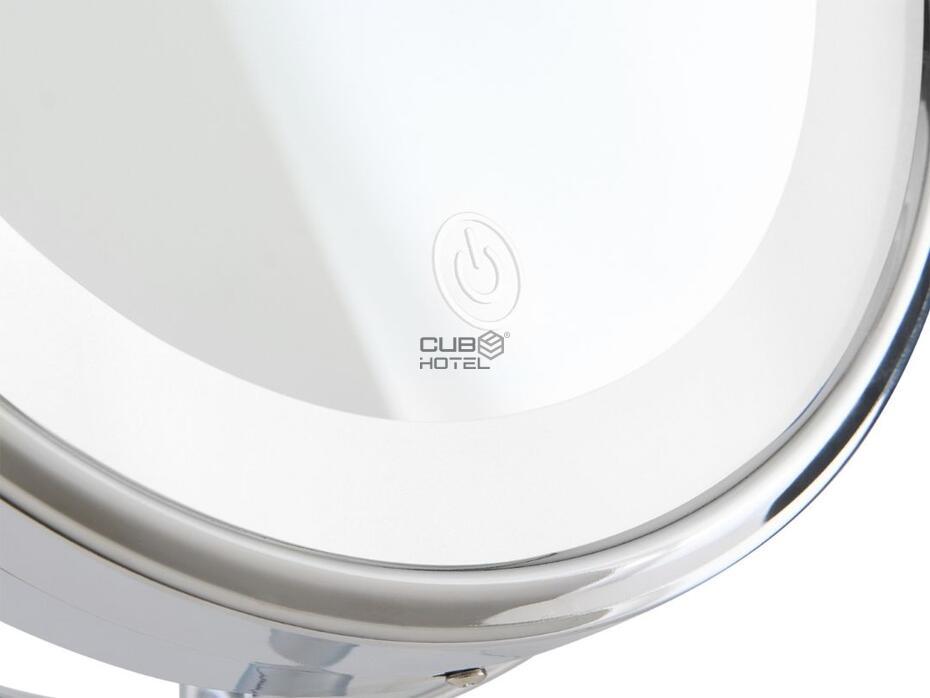- Com iluminação LED de baixo consumo, acionada por botão tátil, permite ajustar a luz para maquilhagem, barbear ou cuidados diários. O espelho é dupla face, com ampliação 1x e 5x, ideal para tarefas que exigem maior detalhe.