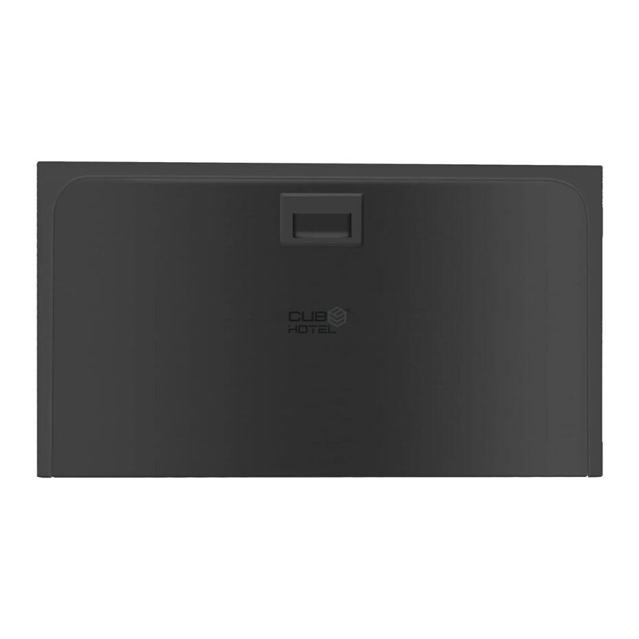 Fabricado em HDPE antibacteriano e aço inoxidável 304, apresenta um acabamento preto escovado elegante e resistente, garantindo durabilidade mesmo nos ambientes com maior circulação.