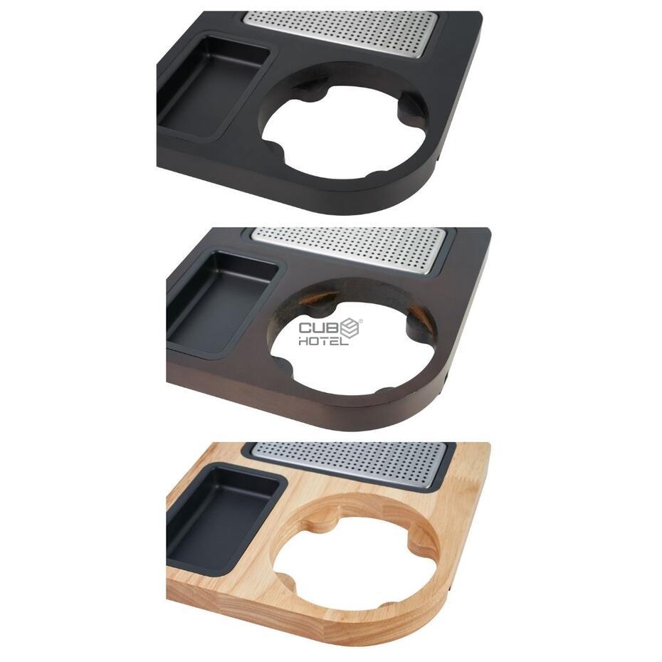 - Disponível em três acabamentos distintos: madeira clara, madeira escura ou preto, este tabuleiro de boas-vindas acrescenta sofisticação e praticidade ao serviço oferecido aos hóspedes.